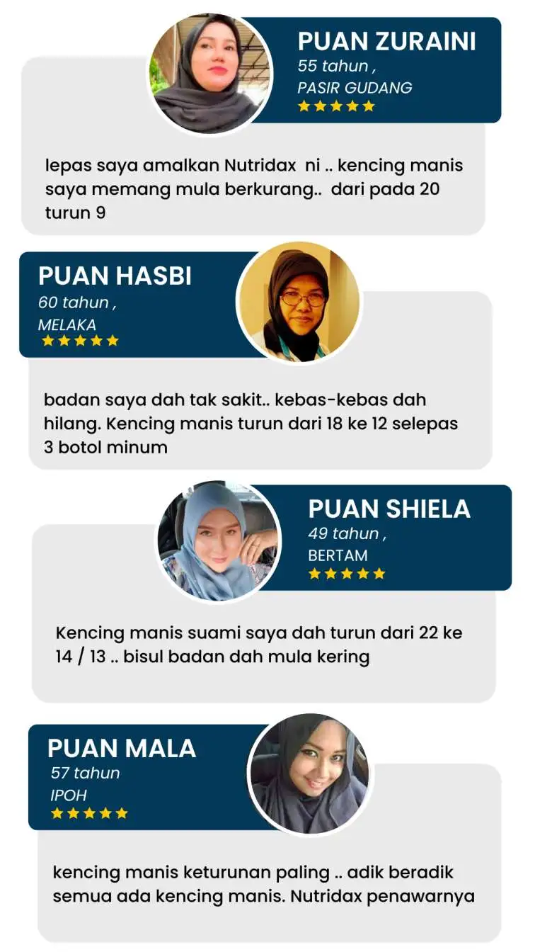 “syukur bila tak perlu potong kaki akibat diabetis. dengan NUTRIDAX segalanya jadi mudah” – Puan Zainab